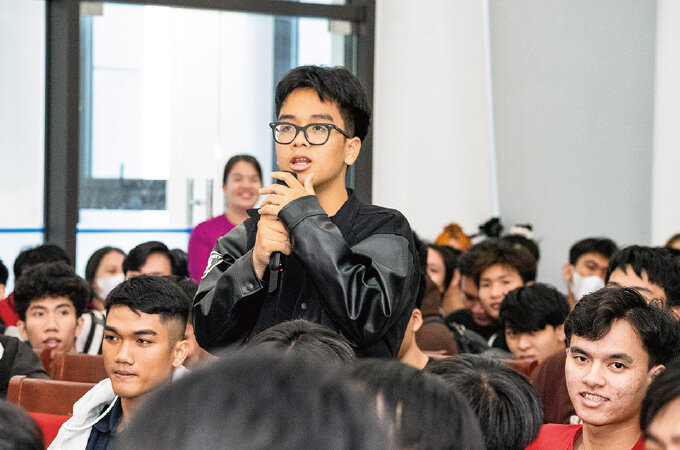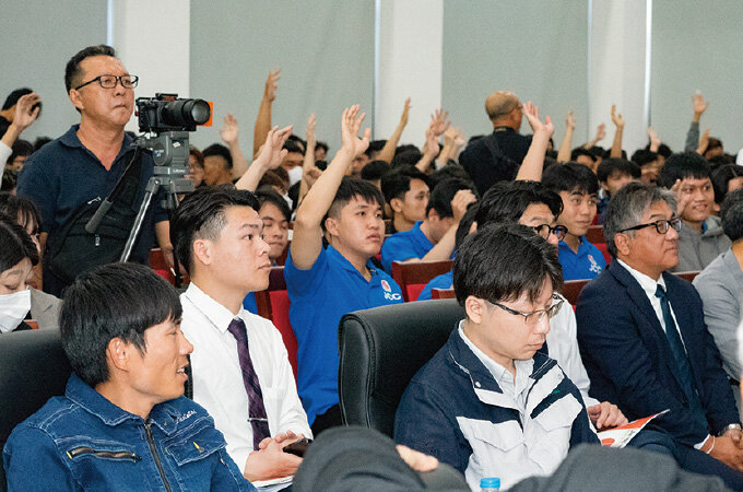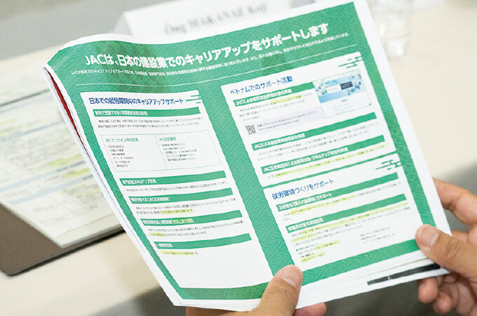 学生や教員を対象とした説明会には、5月14日にホーチミン建設短期大学で258名、16日にミエンタイ建設大学で420名が集まり、計678名が参加しました。会場では、JACが特定技能制度やキャリア支援について説明し、国土交通省、弁護士、FITS、建設企業関係者らが登壇。現場の安全対策や賃金水準、中長期的なキャリア形成の可能性など、日本の建設業の魅力を幅広く紹介しました。現場経験者の体験談や動画上映も行われ、学生が日本で働く姿をよりリアルにイメージできる内容となりました。