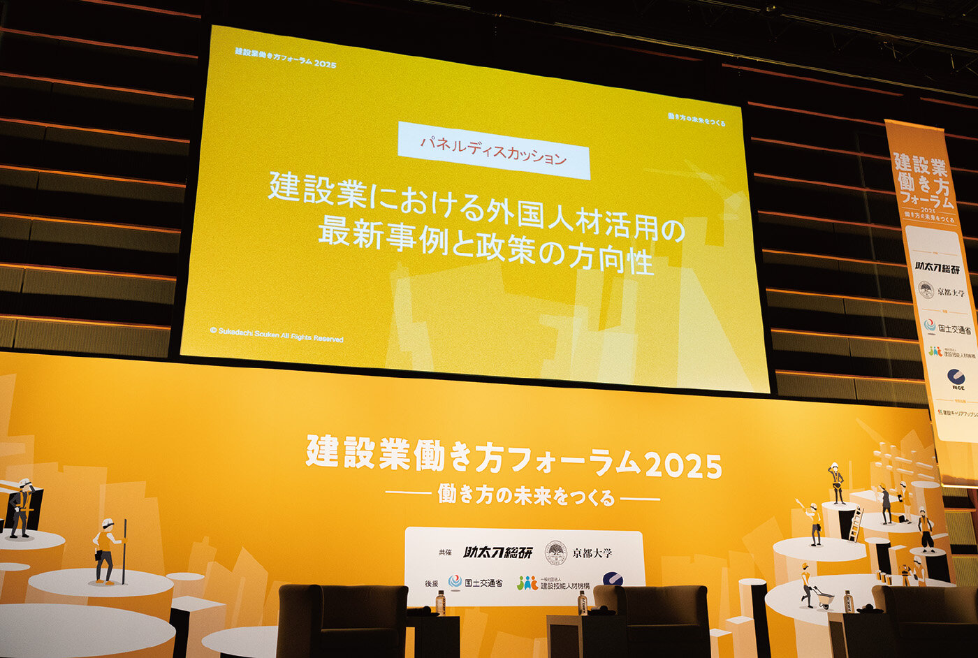 2025年6月25日、「建設業働き方フォーラム2025」が東京国際フォーラムで開催されました。フォーラム内のパネルディスカッション「建設業における外国人材活用の最新事例と政策の方向性」には、JACの山本博之専務理事(当時)、国土交通省 不動産・建設経済局 国際市場課長(当時) 皆川武士氏、株式会社竹中工務店 調達本部 企画管理グループ長 齋藤幸隆氏が登壇。外国人材の活躍や育成の方向性について議論しました。